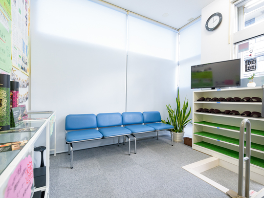 光が射し込み明るく、広く落ち着いたスペースになっております。ベビーカーも院内に入れられます。