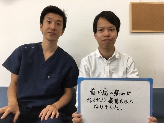 首や肩の痛みがなくなり、姿勢も良くなりました。