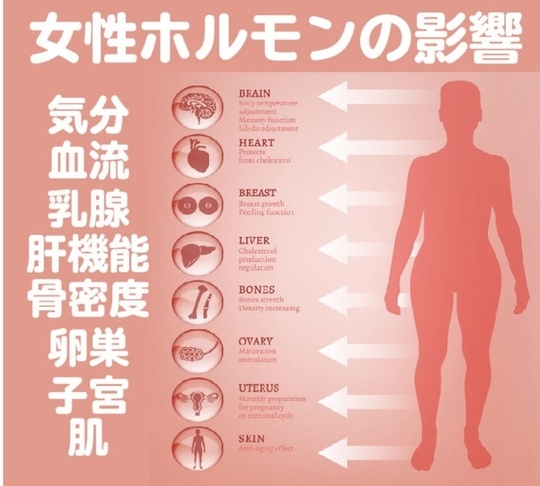 ホルモンの影響は女性では、代謝、体温、血流、生理周期、生理前後の痛みや悩みなどを始め、お肌の調子や、シワなど美容にも健康にも大きく現れます。