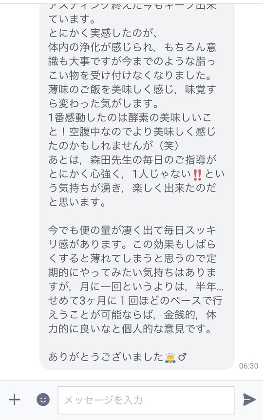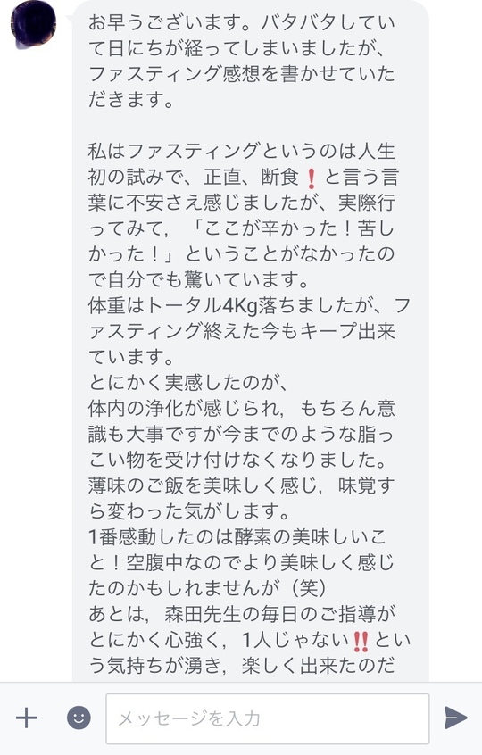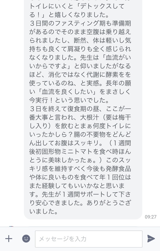 気分的にスッキリしました。大好きな山登りも軽く行けました。(ファスティングした後)