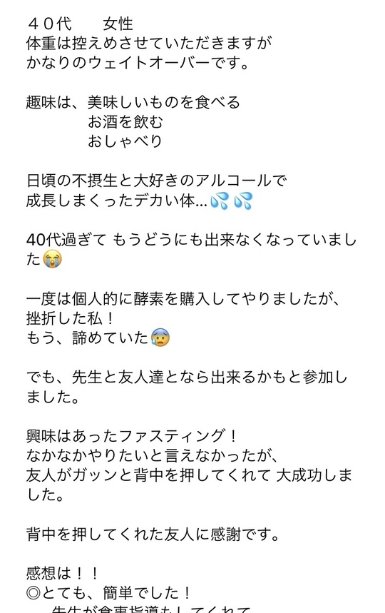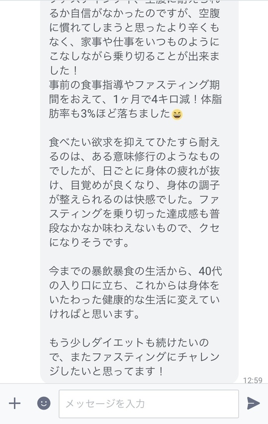 50代 女性 座間市 ダイエット(ファスティング3ヶ月)